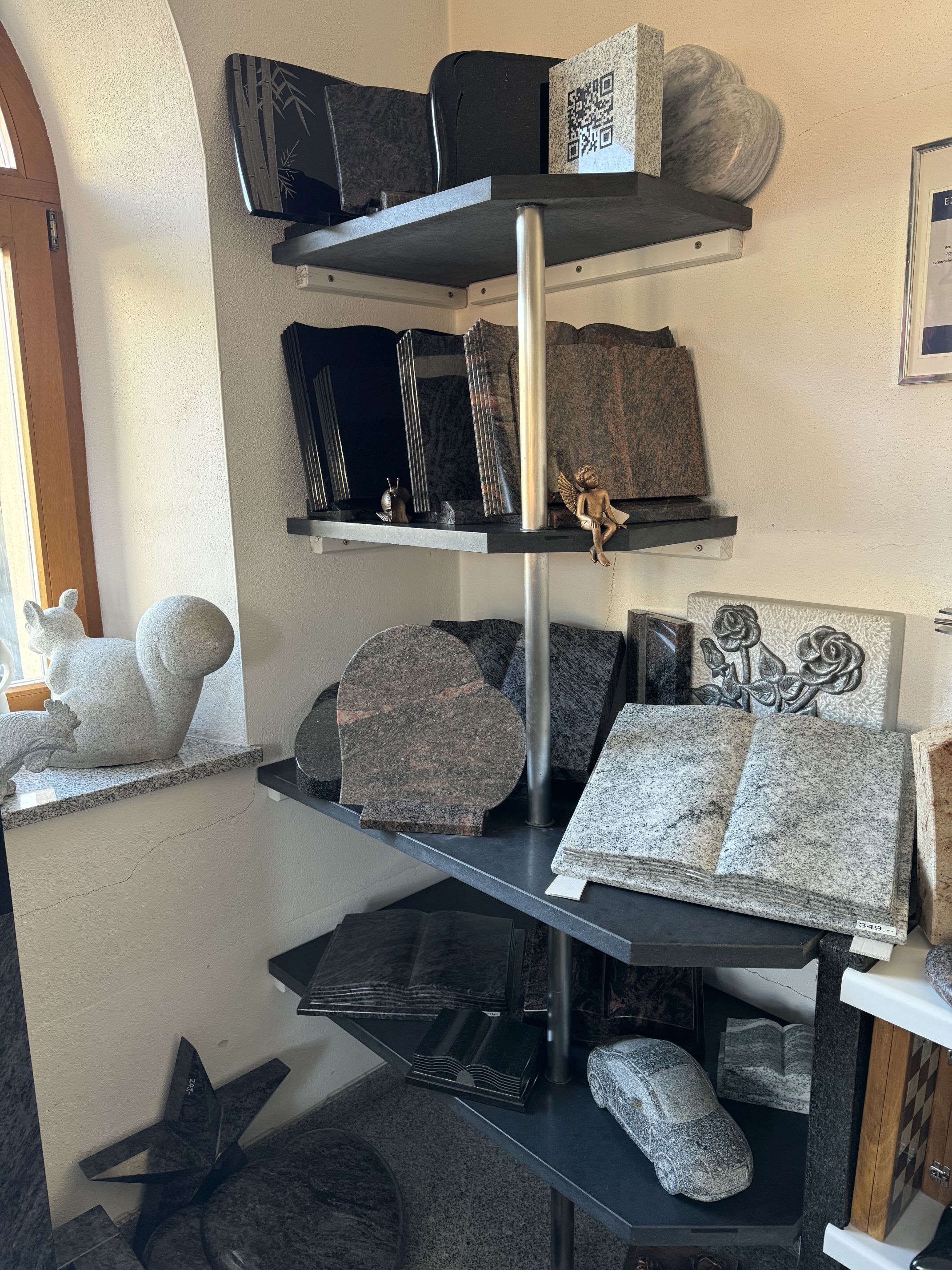 In Unseren Ausstellungsräumen bieten wir Ihnen eine grosse Auswahl stilvoller Zubehörartikel die das Gesamterscheinungsbild der Grabstätten perfekt abrunden.